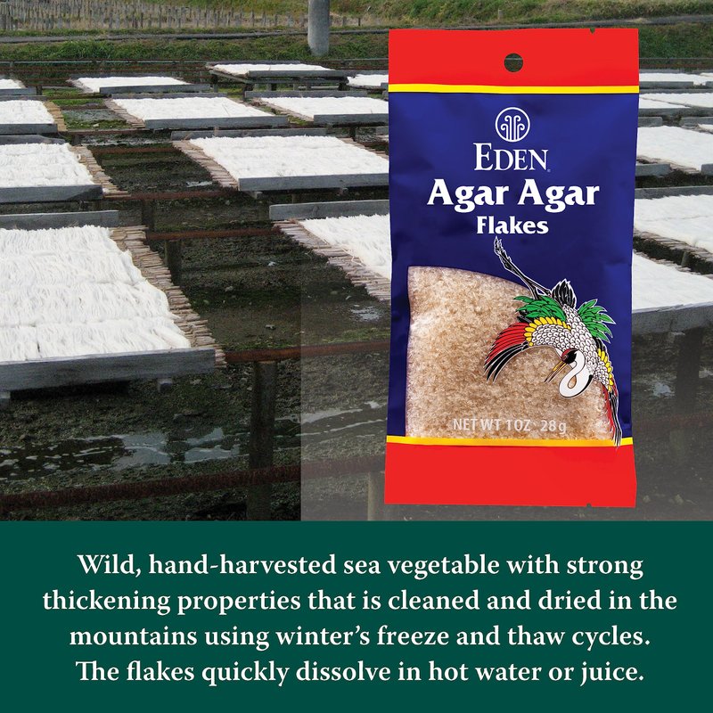 Eden Agar Agar Flakes, A Traditional Odorless, Tasteless Seaweed Gelatin Substitute, Kanten, Japanese, Vegan, 1 oz