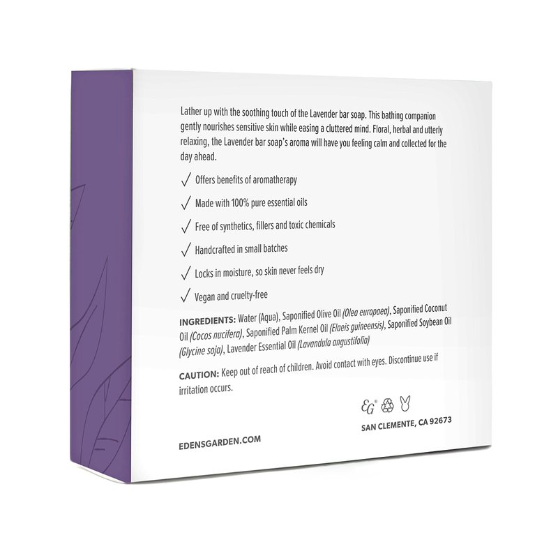 Edens Garden Lavender Natural Aromatherapy Cold Processed Bar Soap (Made With Essential Oils, Vegan, For Face & Body), 4.4 oz Bar