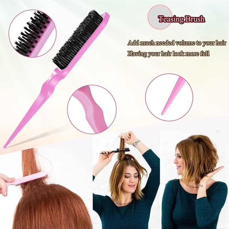 - 【Teasing Brush for Women】:The bristle Teasing brush is made of nylon bristle which is comfortable and soft, it can make your hair look fuller, and they are practical tools for increasing root volume, making a large ponytail and bun; They are suitable for combing bangs, hairlines, eyebrows and eyelashes, back hair, or parting hair; You can also add hair stick or wax to make your hairstyle more beautiful during using; Match with the clips, your hairstyle will be more appealing.