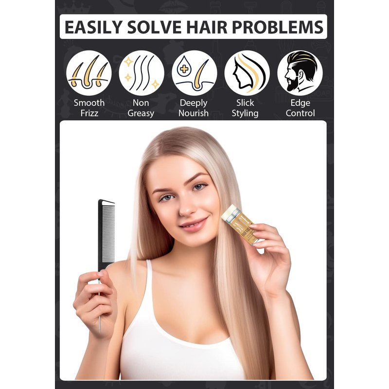 Hair wax stick features a unique formula and design to create smooth and glossy hairstyles for you. Moreover, it is enriched with nourishing ingredients that deeply moisturize your hair, making it healthier. Whether your hair is dry or damaged, our hair wax stick can repair and enhance its quality, giving you a radiant and glamorous look.