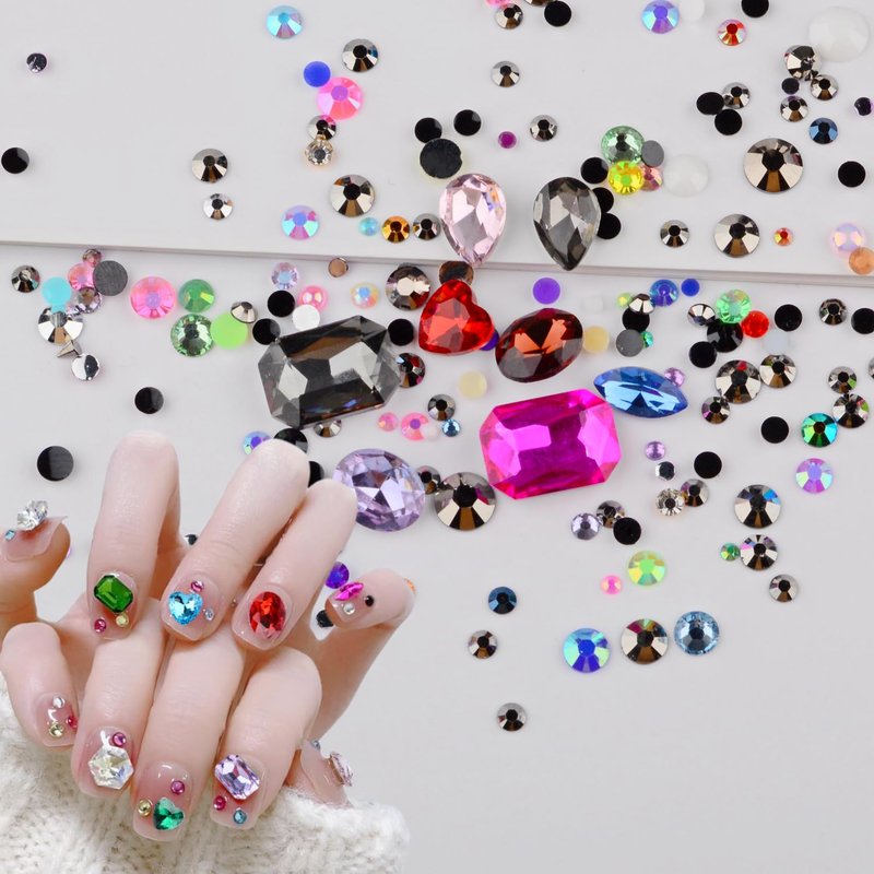 - Big sparkling pointed bottom gems: 9 pieces different rhinestones are made of glass material. Vary in size from 3mm to 14mm, star, heart, round, rectangular, square, oval, teardrop shape, various gems randomly mixed packaging. The nail rhinestones you receive may contain all of the above shapes, or only some of them.