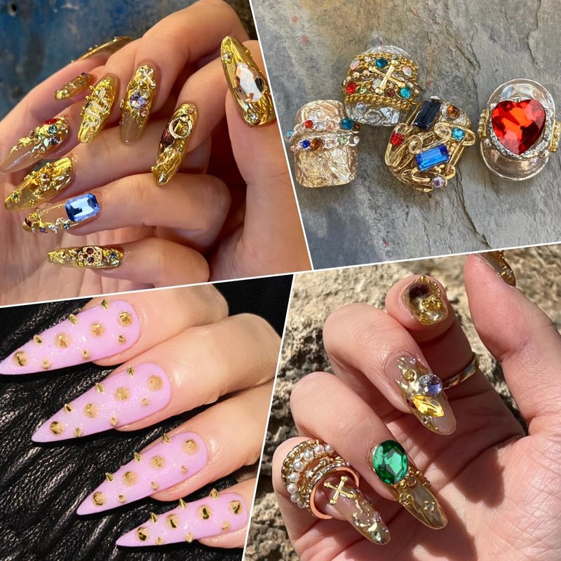 Retro punk nail designs, unique nail art cone studs to create your own sparkling and unique nail art, perfect for cool girl nail art designs.