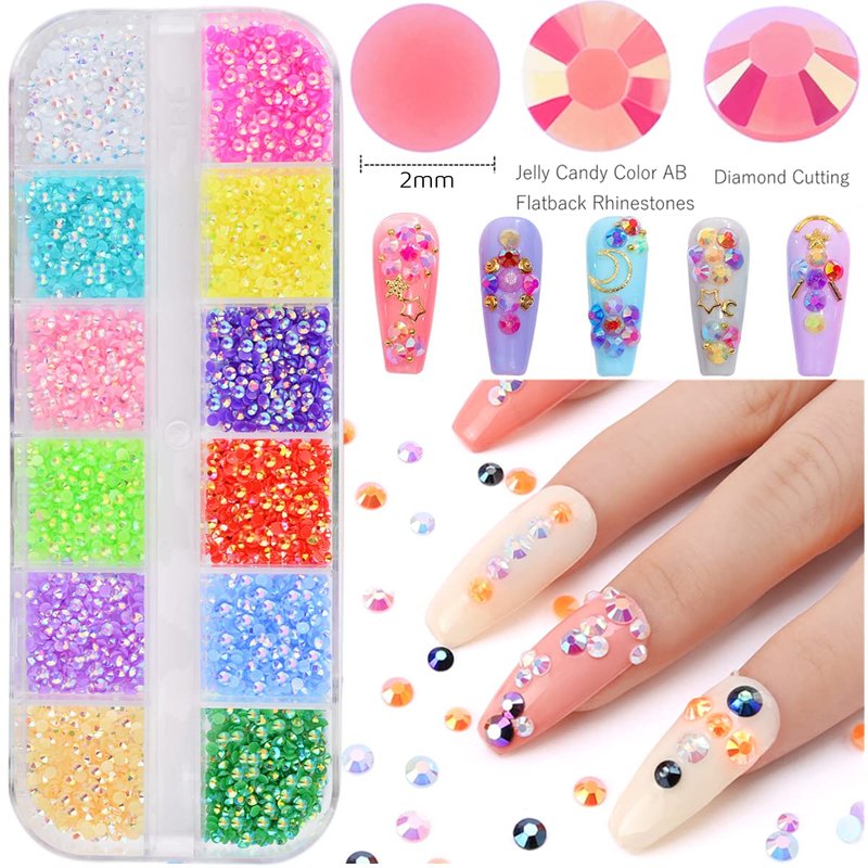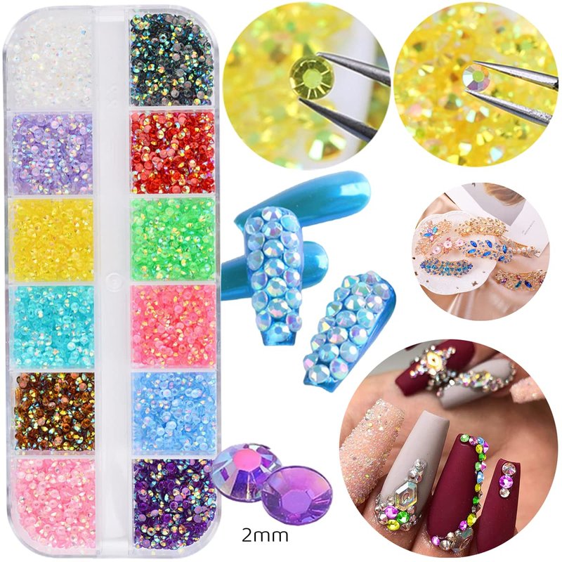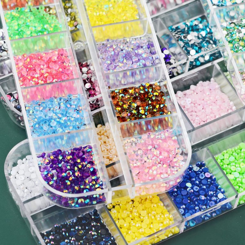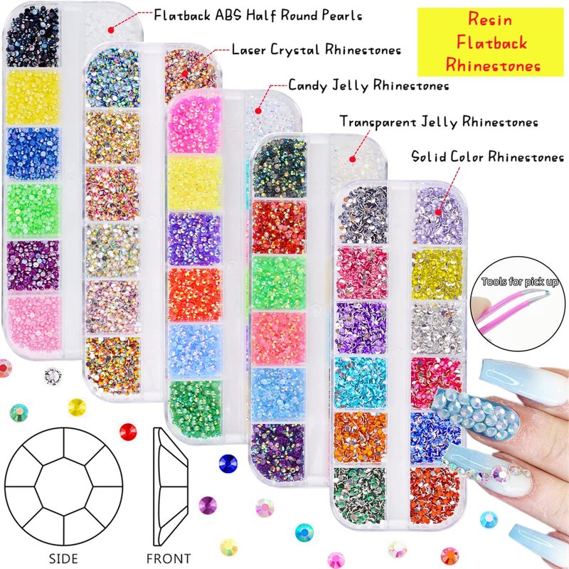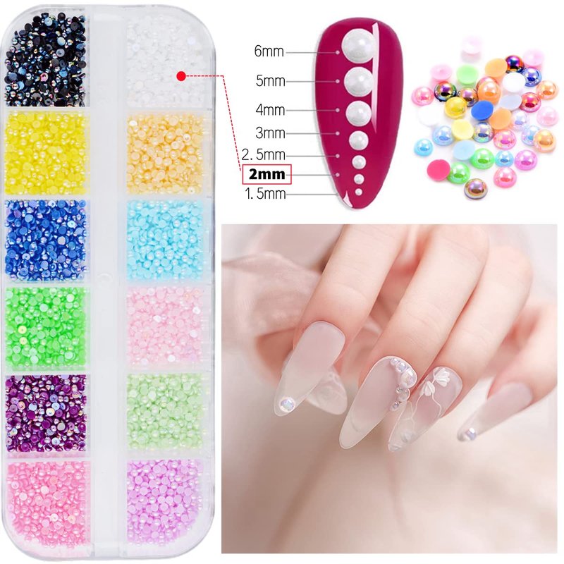 - Various styles: There are 5 different styles, mermaid flatback pearl, solid color / laser / jelly / transparent jelly flatback nail art rhinestones. Each style has 12 colors, and each color has about 220 pieces, 2mm diameter.