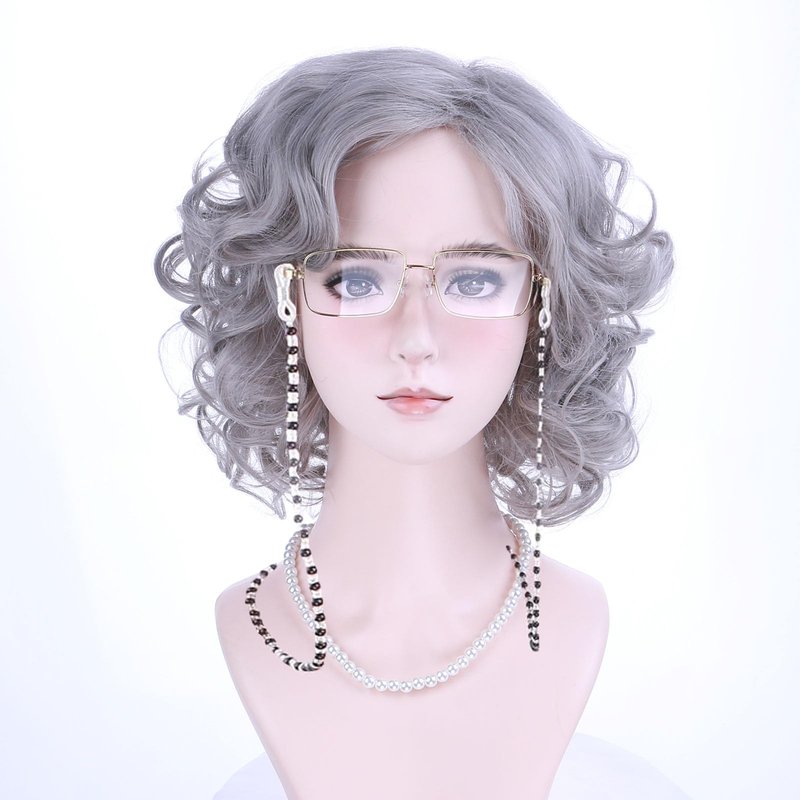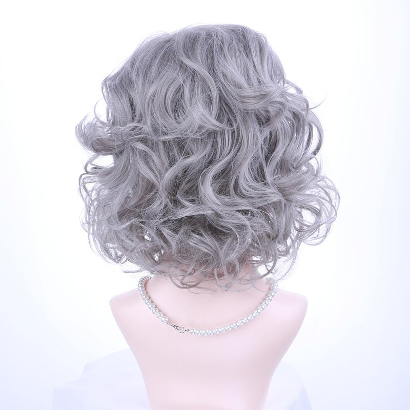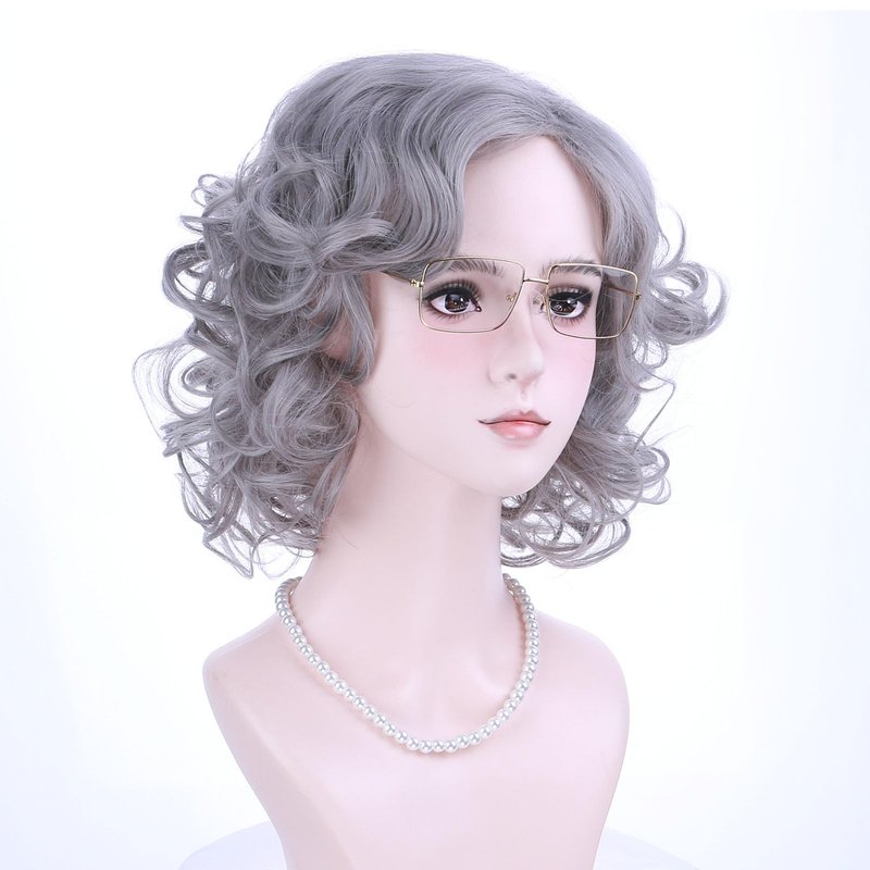 Edivd Kids Gray Grandma Granny Costume Wig Short Sliver Gray Side Part Wig for Girls Short Light Grey Curly Wavy Wig for Child 100 Days of School Heat Resistant Synthetic Wig with Wig Cap