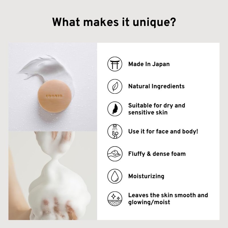 EDOBIO MASU SOAP – GENTLE FACE WASH MADE IN JAPAN – LACTIC ACID BACTERIA, GREEN TEA, CHERRY LEAF – MOISTURIZING – NATURAL INGREDIENTS, NO HARSH CHEMICALS