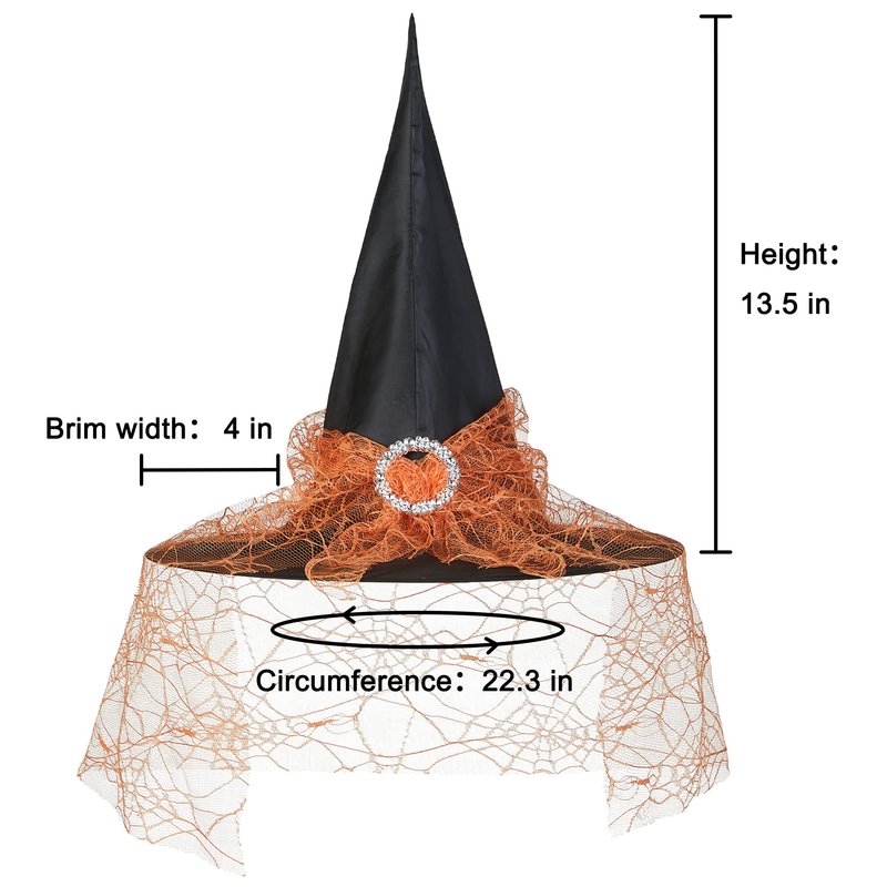 - Sparkle at Halloween: Our witch hat features lace and sparkling rhinestone buckles. The perfect combination of the witch hat with delicate lace elements bestows it with a mysterious and elegant charm. The black mesh material of the witch hat gives it a spooky and enigmatic appearance, making you a more alluring witch and capturing the attention of others at costume parties.