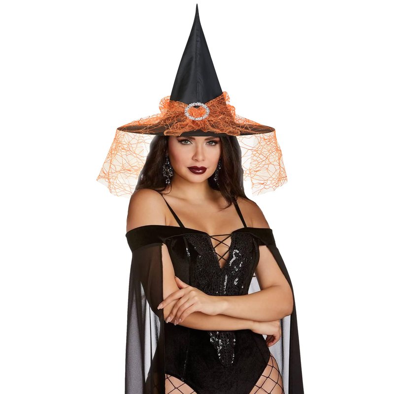 Edoneery Halloween Witch Hat for Women, Mesh Lace Fancy Dress Wizard Costume Accessory for Cosplay Parties(Orange)