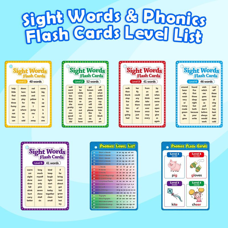 - Comprehensive Set for Early Learning –Comprehensive Set for Early Learning – This set includes 62 double-sided phonics flash cards and 220 dolch sight words, covers words commonly found in Pre K / Kindergarten / 1st grade / 2nd grade / 3rd grade. Making it a great tool to build strong reading foundations in kids through fun and interactive activities.