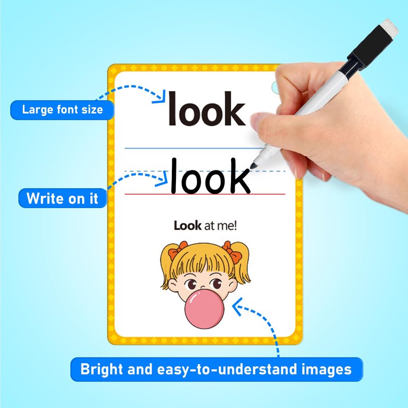 - Interactive Spelling Practice with Dry-Erase Cards – Write and practice spelling words directly on the cards with a dry-erase marker, enhancing spelling games and making learning to read even more effective. Each card comes with a corresponding sentence, making it easier for children to deepen their memory and understanding of the words.