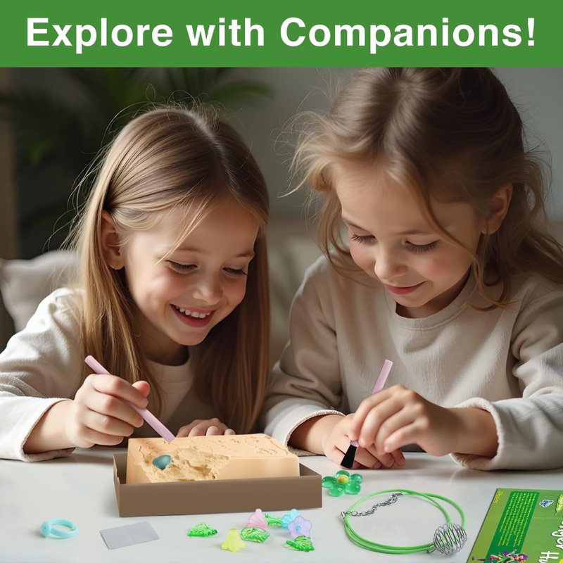 - [Flower Fairy Excavation Kits for Kids] This mining kit include: 1 block, 1 chisel, 1 brush, 1 spiral cage, 1 bracelet string, 1 ring base, 2 glue dots, 1 necklace cord, 10 clue cards, 1 digging tray, 1 instruction guide. this kit is a perfect kindergarten science kit and early learning tool, offering safe, age-appropriate fun.