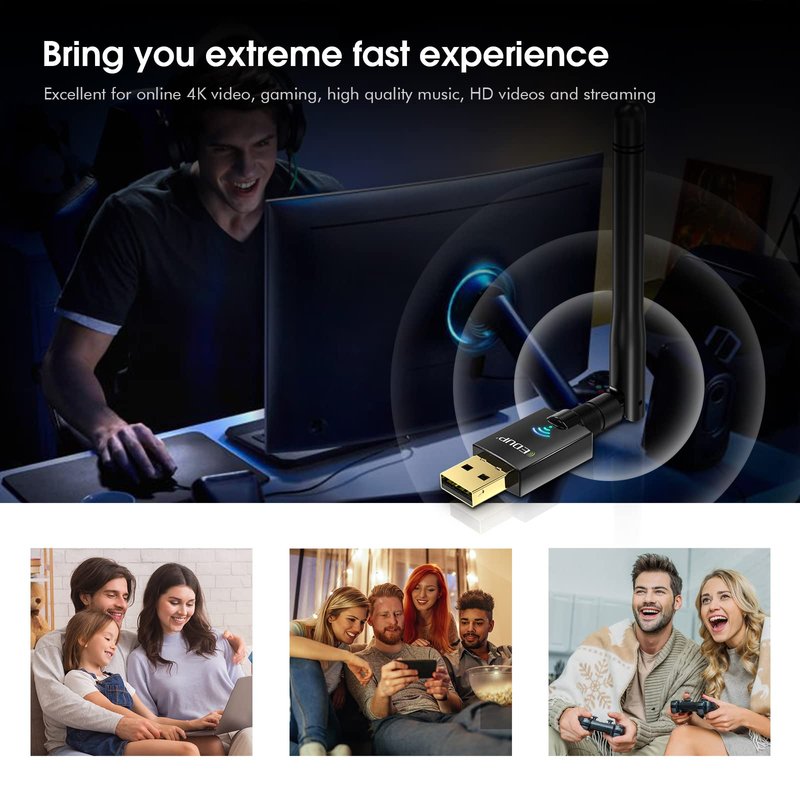 - Ultra-Speed &Stable Signal: Upgrades your WiFi card to 600Mbps Wi-Fi speeds. Offering 433Mbps over 5GHz or 150Mbps over 2. 4GHz for online gaming and 4K Ultra HD video streaming.