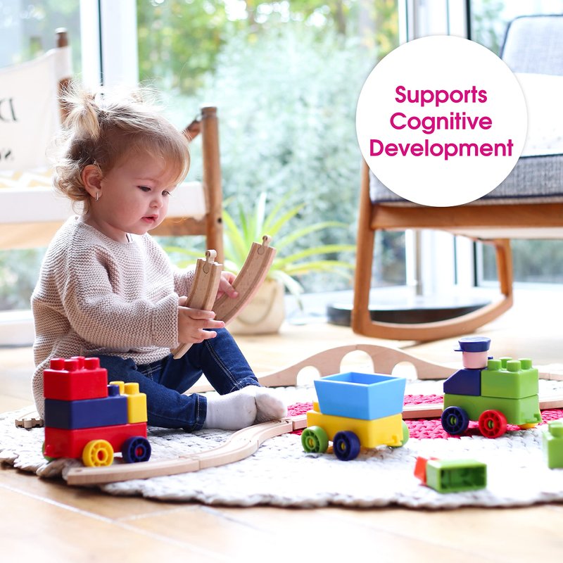 - WHAT’S INSIDE: 30 Train-themed blocks in different sizes and shapes. PVC bag is included for easy storage and cleanup. Suitable for 12 months and up.