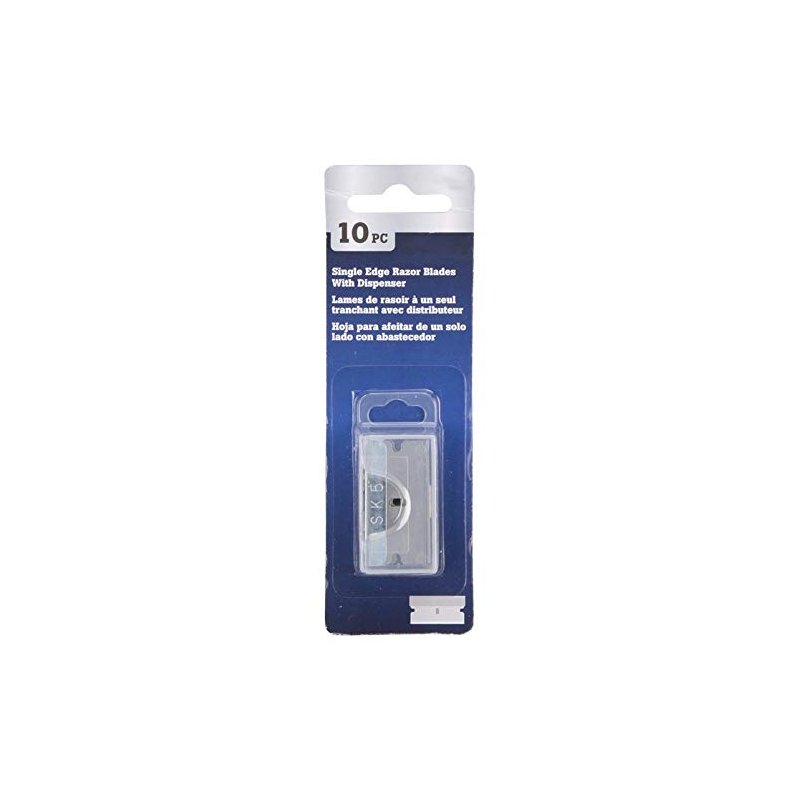 Edward Tools Utility Razor Blades 10 Pack with Dispenser is a pack of 10 durable razor blades for cutting vinyl, cardboard, leather, paper, foam, wood and more. Made of SK5 steel and .25mm thick these are made to fit all standard utility knives and blades. The storage dispenser allows for quick blade access and covers the blades for safety.