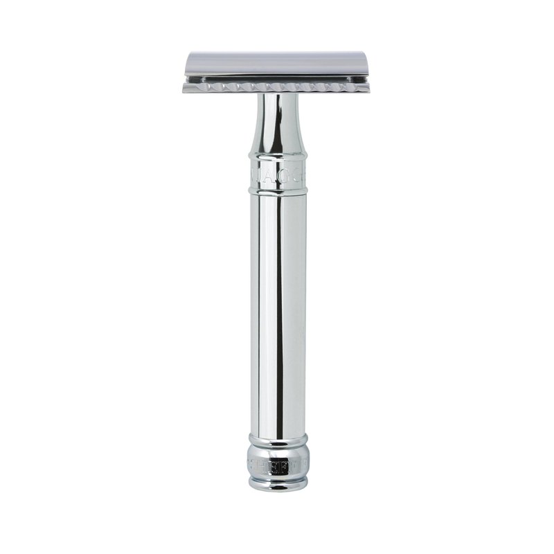 - PREMIUM QUALITY: Machined from solid brass, triple-plated, hand-polished and finished in high-quality chrome plate, ensuring improved wet grip and precision control. This classic men’s razor offers a comfortable, barbershop quality shave - every time.
