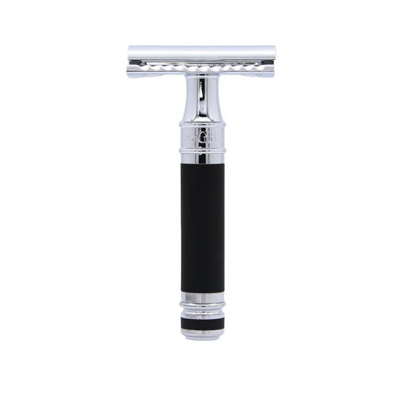 - Premium Quality: Machined from solid brass, triple-plated, hand-polished and finished in a chrome knurled effect, ensuring improved wet grip and precision control. This classic men’s razor offers a comfortable, barbershop quality shave - every time.