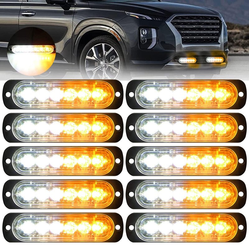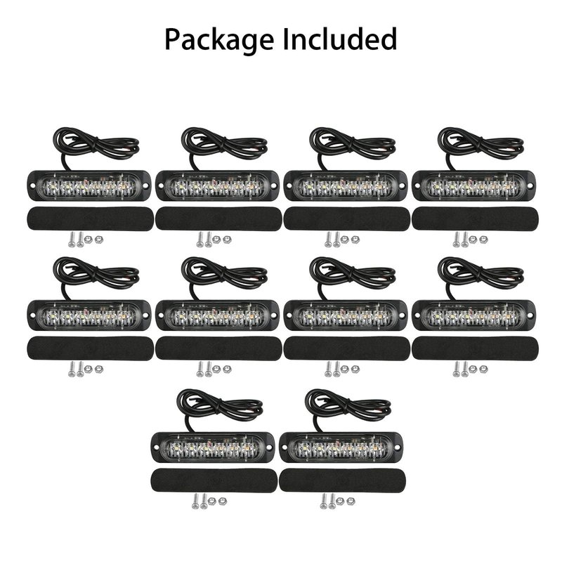 EEEKit 10 Pack LED Emergency Strobe Lights, Amber White 6 LED Strobe Warning Emergency Flashing Light Caution Construction Hazard Light Bar for Car Truck Van Off-road Vehicle ATV SUV Surface Mount