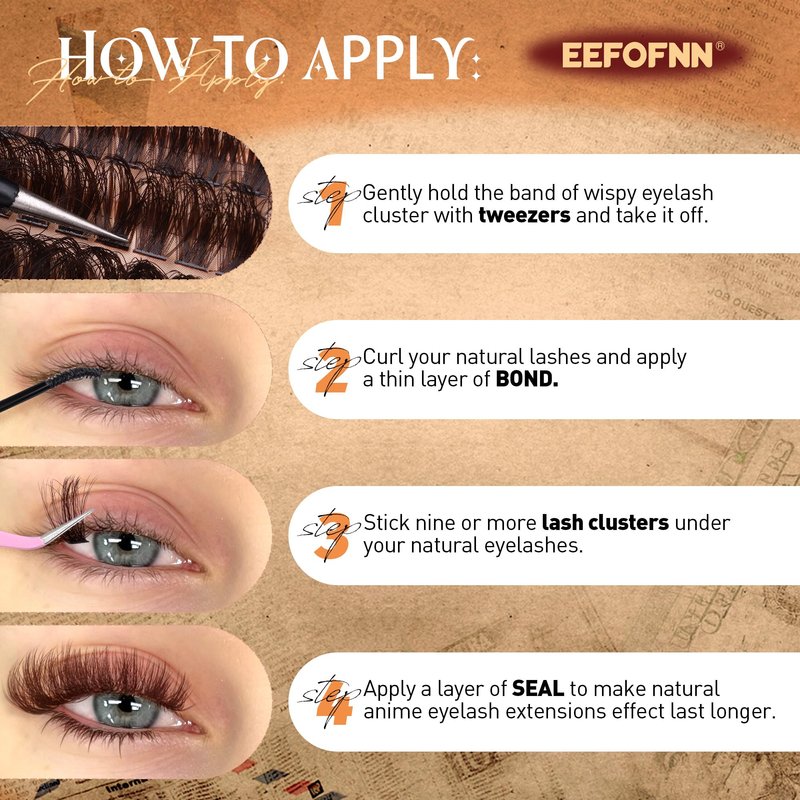 - Eefofnn’ s Tips: Wispy, 50P, 60P and 80P natural lash clusters and bottom lashes are suitable for daily life, parties and travel. If you have new ideas about brown lash extensions and d curl lash clusters, please tell us in time