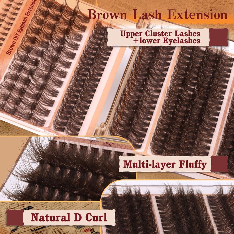 - Natural Brown Eyelash Clusters: 5 styles brown lash clusters are suitable for creating a natural lash extension look for all skin tones, especially for girls with blonde, brown and red hair. 360 pcs cluster eyelash extensions can meet your makeup needs
