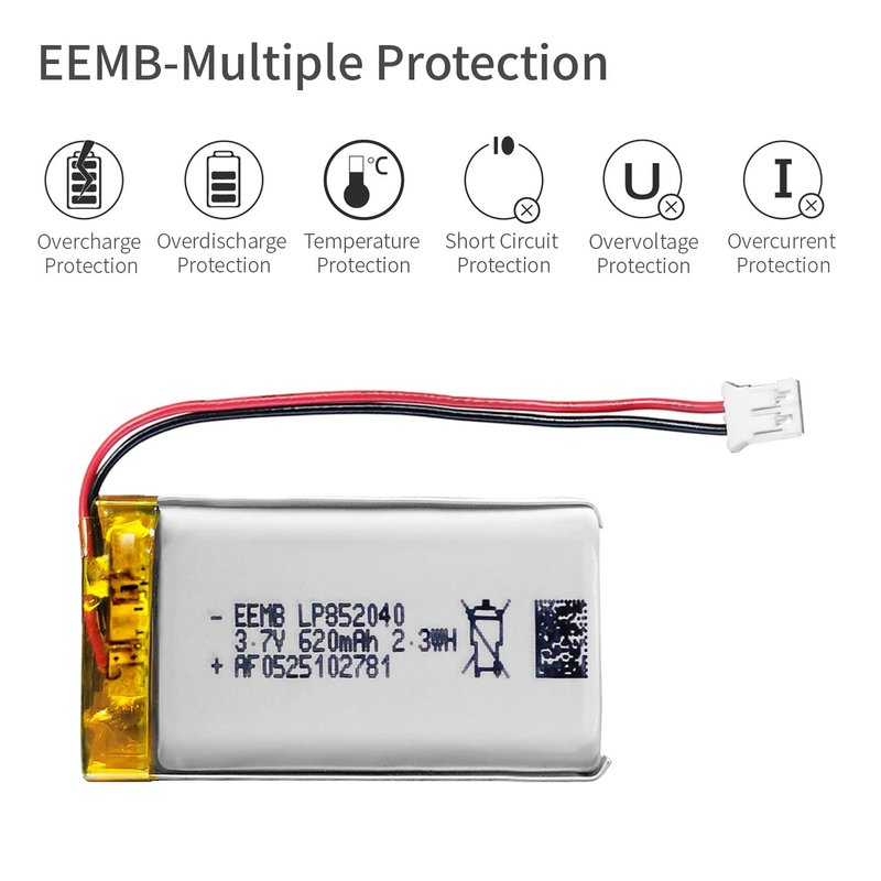 EEMB 3.7V Lipo Battery 620mAh 852040 Lithium Polymer ion Battery Rechargeable Lithium ion Polymer Battery with JST Connector Make Sure Device Polarity Matches with Battery Before Purchase!!!