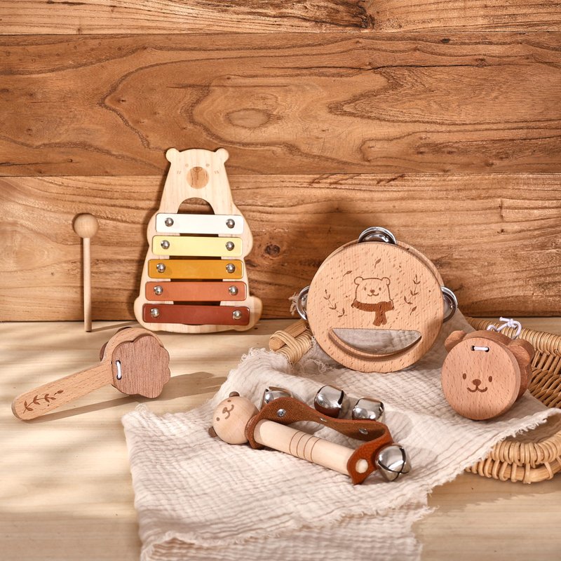 - EERKEOD MONTESSORI MUCICAL INSTRUMENTS:Crafted with adorable Wooden Design and care, our Percussion musical Instruments set features cute, bear-themed designs that delight little ones. Each instrument is made from high-quality natural wood, ensuring a safe and non-toxic playtime experience