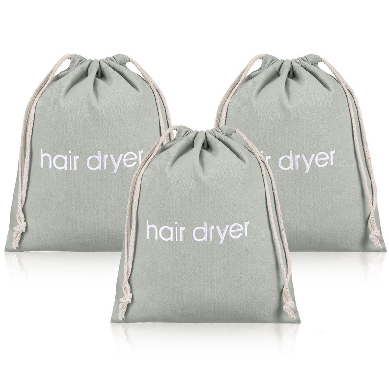 E&EY 3 | 6 | 8 Pack Hair Dryer Bags Drawstring Bag Container Hairdryer Bag for travel bathroom Light Grey (3 PCS)