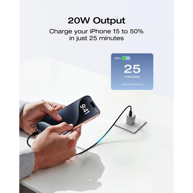 - Rapid Full-Speed Charging: Experience unmatched charging speed with 20W output. This USB-C charger delivers top-speed charging for iPhone Pro and Pro Max models and can top up an iPhone 15 to 50% in just 25 minutes. Keep your devices powered up quickly and efficiently.