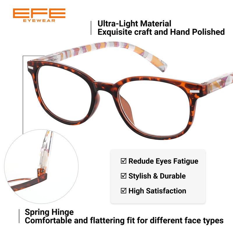 - Vintage Reading Glasses: EFE magnifying glasses lens provide thinner & more accurate magnification, ensuring you a clear view & comfortable wearing experience, and no worry about eye fatigue, eye strain, blurred vision and migraine