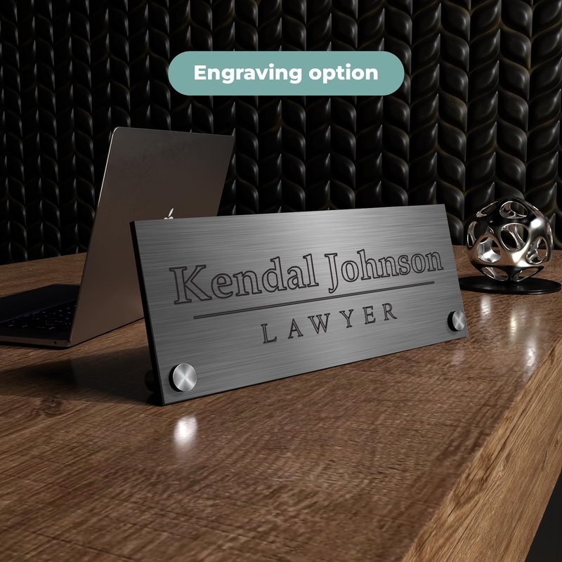 - CUSTOMIZABLE DESIGN: Our Desk Name Plate can be customized to totally match the theme or decoration of your office. Choose between different design styles and metal colors, like a metal, golden or black metal background. Create your own style!
