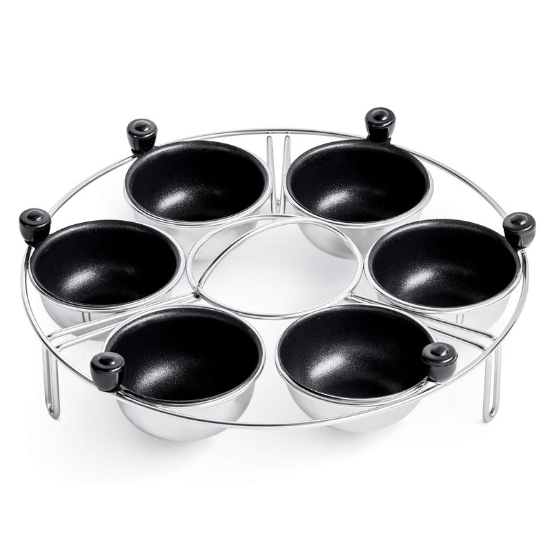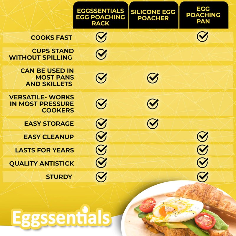 - SAFE AND EASY TO USE- These deluxe poacher cups feature a convenient Bakelite handle that cools down from the heat quickly and makes for easy removal. Each cup can be individually removed and poured directly onto your breakfast plate or toast. Many Silicone Cups will tip over and spill in the pan or Pressure Cooker. The Eggssentials Egg Rack will keep all your eggs free of spills and mess. The egg insert features a handle in the middle to make it easy to remove from your pan or Instant Pot TM.