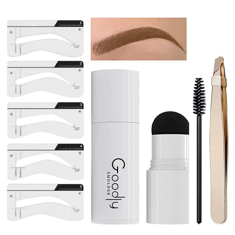 - EFFORTLESS & EASY - Create flawless eyebrows in seconds! Each eyebrow kit includes 1 Medium Brown stamp, 5 eyebrow stencils, a gold tweezer, 1 brow brush, and a small makeup bag perfect for travel.