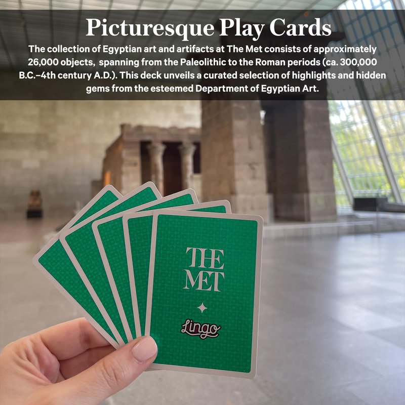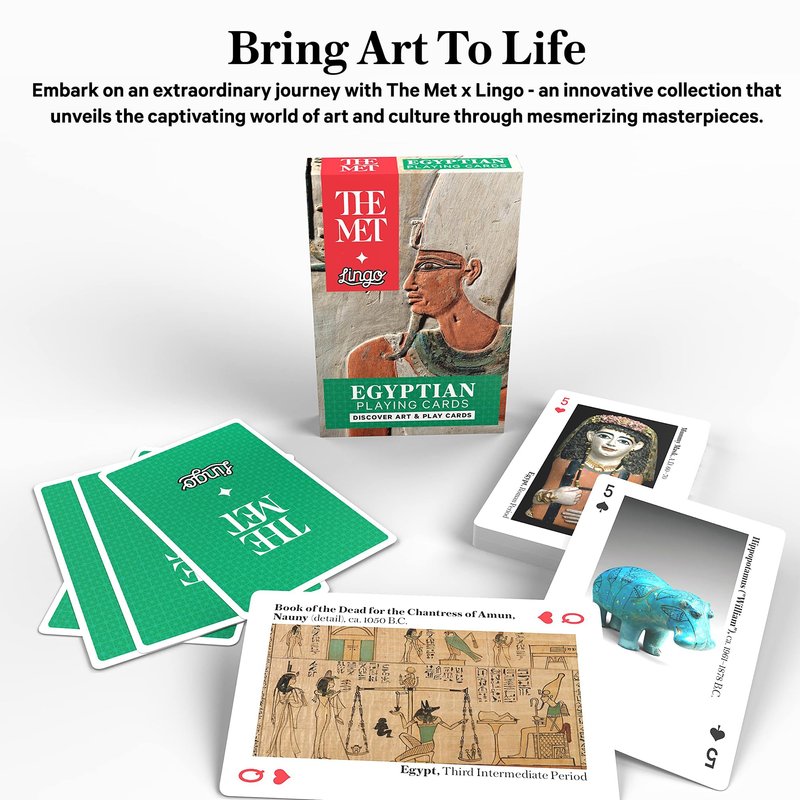 - STANDARD PLAY DECK - The Met x Lingo's deck of cards brings together a handpicked selection of striking Egyptian imagery and art from across The Met collection. Each deck of cards has 52 of the Met’s most compelling Egyptian exhibit along with key trivia.