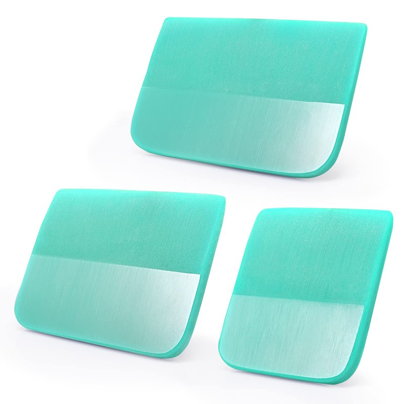 - WINDOW TINT SQUEEGEE SET PACKAGE INCLUDED: 3PCS different size TPU rubber vinyl squeegee,Large size:4.68 * 2.93 inches, Medium: 3.94 * 2.93 inches, Small: 2.54 * 2.93 inches,the Vinyl Scraper is soft and elastic,meet variety working demands,perfect for curved surfaces when you install your vinyl wrap.
