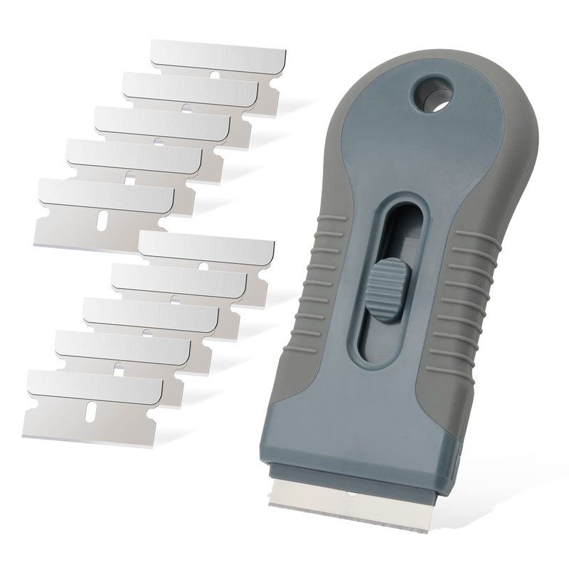 EHDIS Ceramic Scraper Car Sticker Remover Glass Stove Top Razor Scraper Label,Glue,Paint,Adhesive Remover Tool + 10pcs Stainless Steel Razor Blades (Grey)
