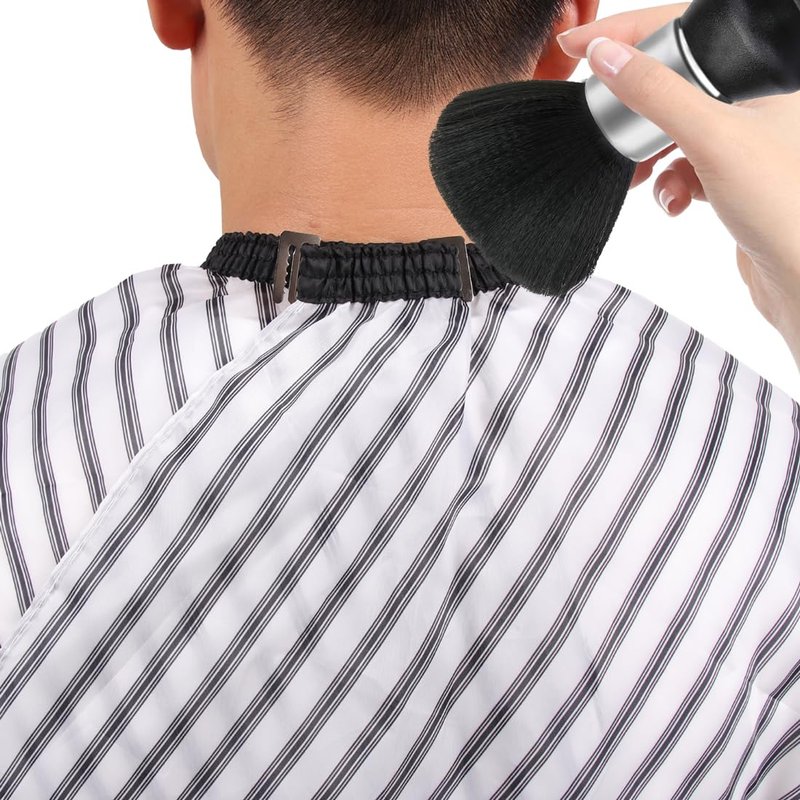 - Package Includes: 1 salon barber cape with 2 hooks(Easy to adjust size) ,1 x neck duster brush, suitable for families and hair salons
