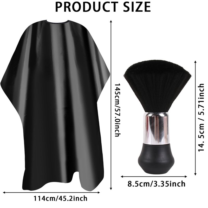 - Package Includes: 1 salon barber cape with 2 hooks(Easy to adjust size) ,1 x neck duster brush, suitable for families and hair salons