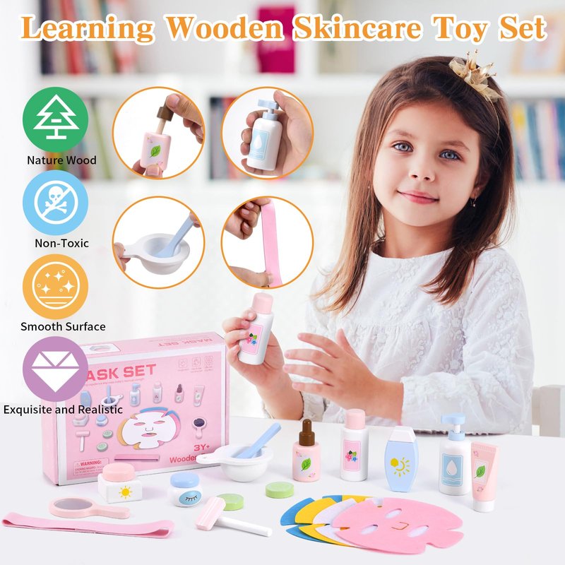 - Great Gift: This makeup toy set is a perfect gift for any occasion, such as party, pretend game, role play, class reward, holiday toy gift, Christmas gift and birthday gift for kids aged 3 4 5 6 7 8. the wooden skincare toy set for kids to explore their interests in fashion, beauty, and role-playing while learning and having fun.