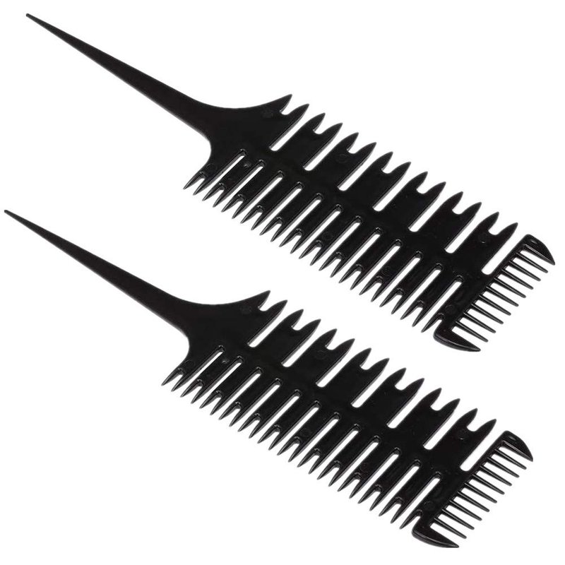 This hair dyeing comb set includes two professional salon hair coloring dyeing combs with three sides, including braided surfaces and a regular comb on top. The comb is crafted from strong, flexible, and good materials, and features an ergonomically designed handle for a firm grip and effortless handling. It's perfect for professional use, automatically cutting or weaving hair in one go, and is ideal for hair coloring and slicing.