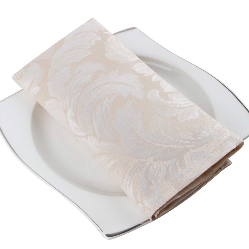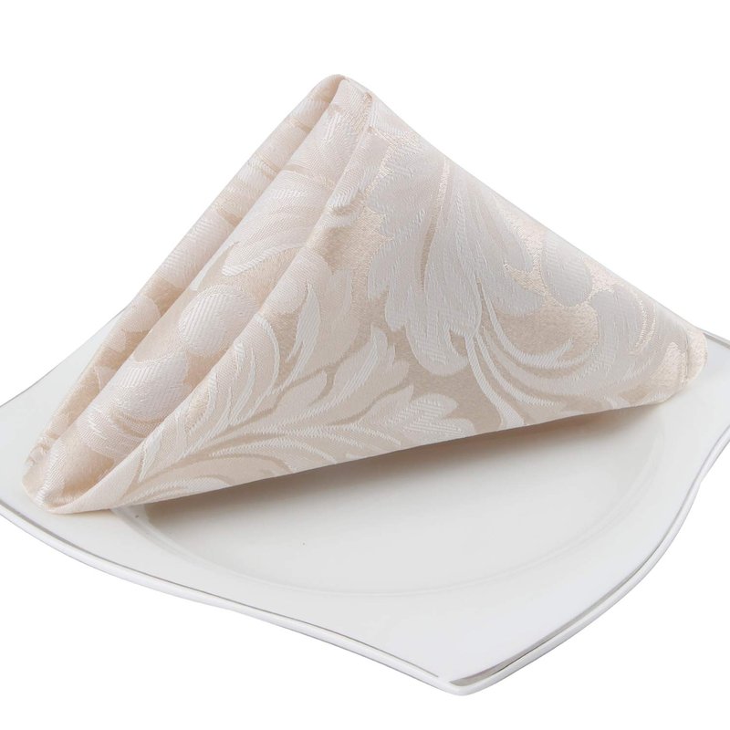 EHouseHome Damask Jacquard Cloth Napkins Waterproof Spillproof Polyester Fabric Napkins Beige, Set of 12, 17 x 17 Inch