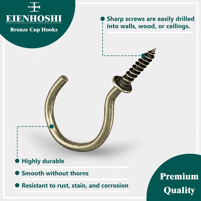 EIENHOSHI Cup Hooks, Bronze, Screw in Hooks Kit for Hanging(1/2", 5/8", 3/4", 7/8", 1'', 1-1/4") - 105 Pcs