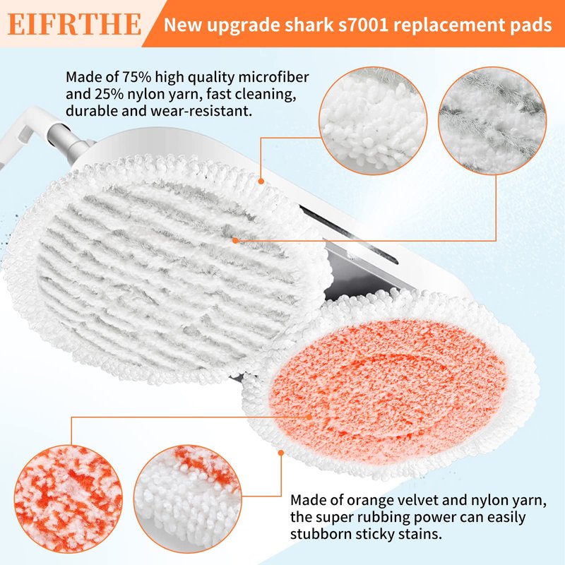 - ❤️Shark S7001 set: fine soft fiber scrubbing pad X2 (corrugated), soft scrubbing pad X2 (gray), heavy duty scrubbing pad X2 (striped), strong scrubbing pad X4 (orange). eifrthe S7000 replacement steam mop set has the same features and dimensions as the Shark S7000 steam mop.