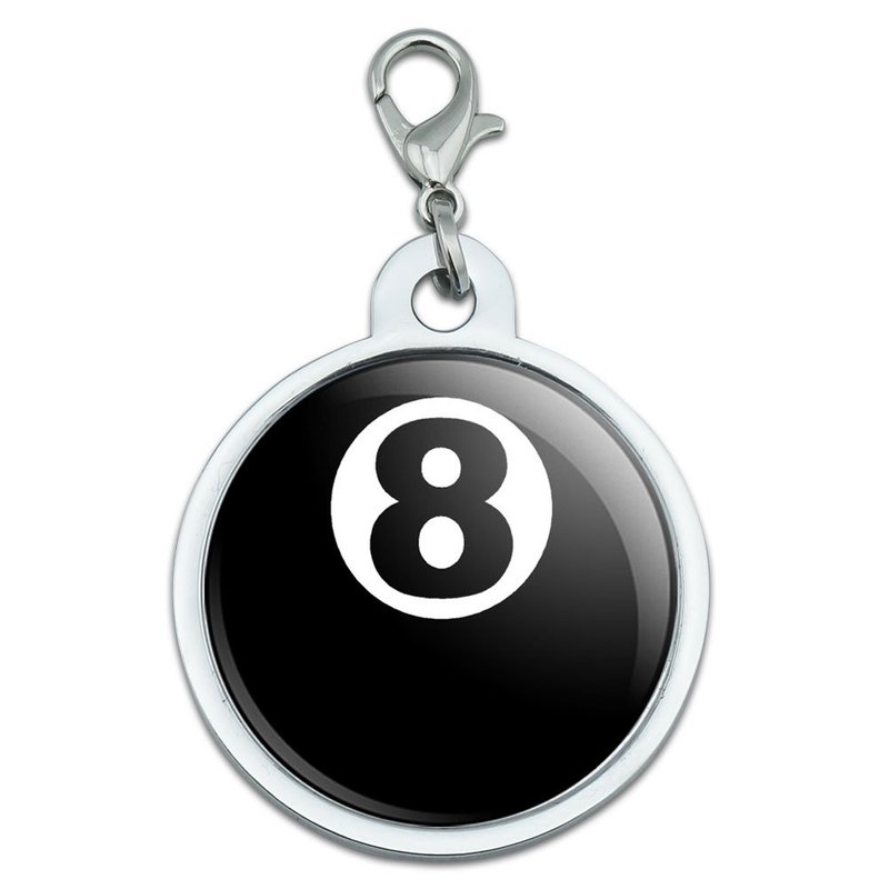 Eight Ball - Pool Billiards Large Chrome Plated Metal Pet Dog Cat ID Tag