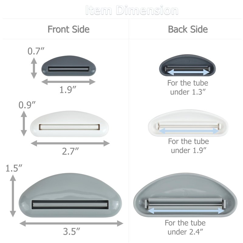 - [Wide Application] Including 3 sizes to fit multiple sized tubes: 2.4", 1.9" and 1.3", works on aluminum and plastic tubes, suitable for squeeze toothpaste, cream tube, cleansing foam or other items