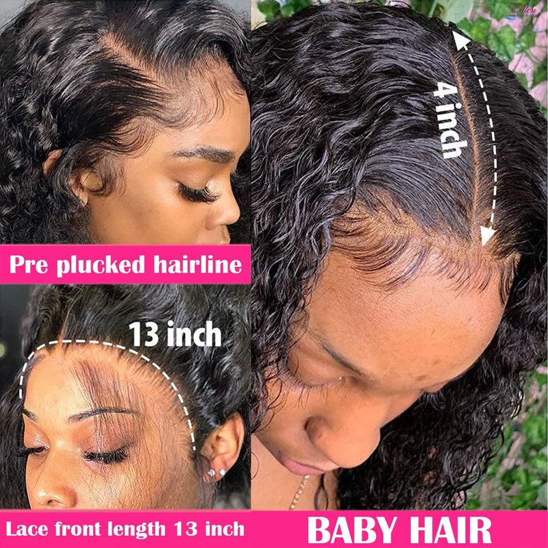 - Color: Natural Black 13x4 Deep Wave Wigs Human Hair