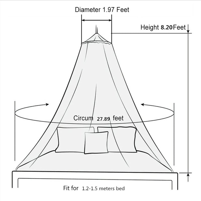 - ❖ GENEROUS SIZING - (Steel Ring Diameter * Height * Hem Circumference) 60 * 250 * 850cm/23.6*98.4*334.6inch. Ultra-light(170-175g), merely hang it on the hooks which sticked on the ceiling. After receiving the bed canopy, gently shake to start use (Don't touch the sharps or pull hard).