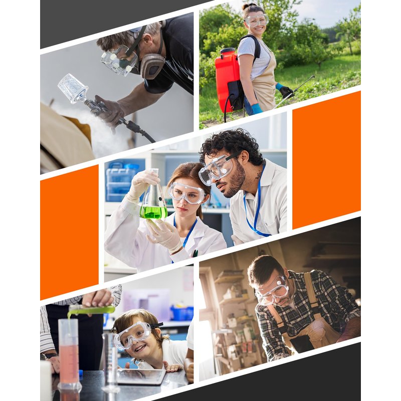 - Splash goggles are also commonly used in scenarios such as wood factories, repair workshops,construction sites,paint booths,and other places with high levels of dust.