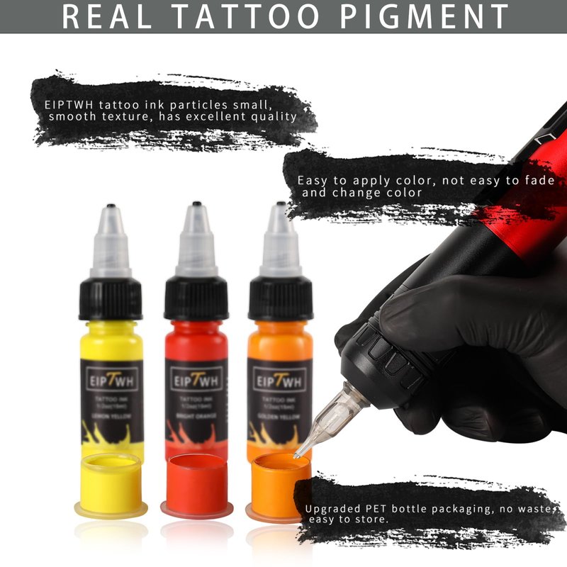 - 💕【Excellent quality】: as a water-based tattoo pigment, Eiptwh Tattoo Ink Colors Set is easy to mix and dilute, the tattoo ink is smooth and easy to color and color retention, not easy to change color and fade.can be used on human skins,No fade,Long Lasting,Take colors well and vibrant