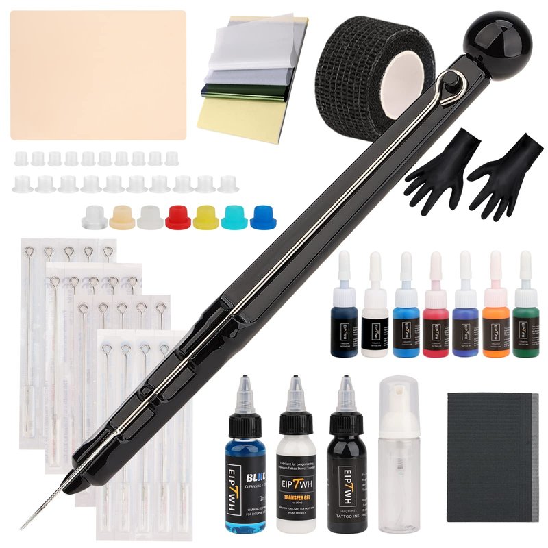 Eiptwh Poke and Stick Tattoo Kit Tattoo Pen set 10 Tattoo Needles 10 Color Tattoo Ink for Beginners
