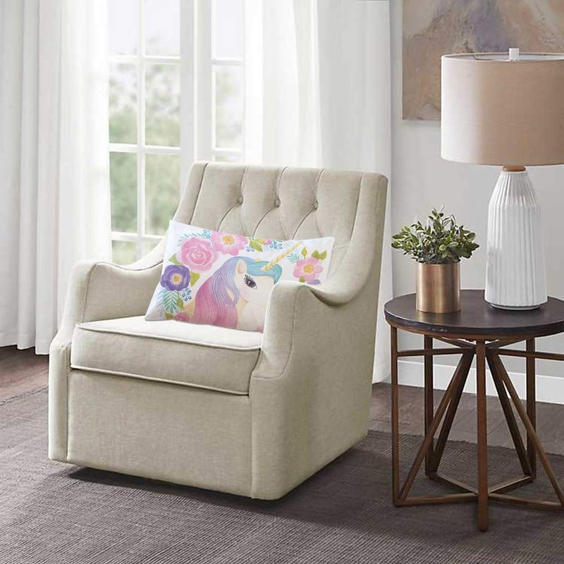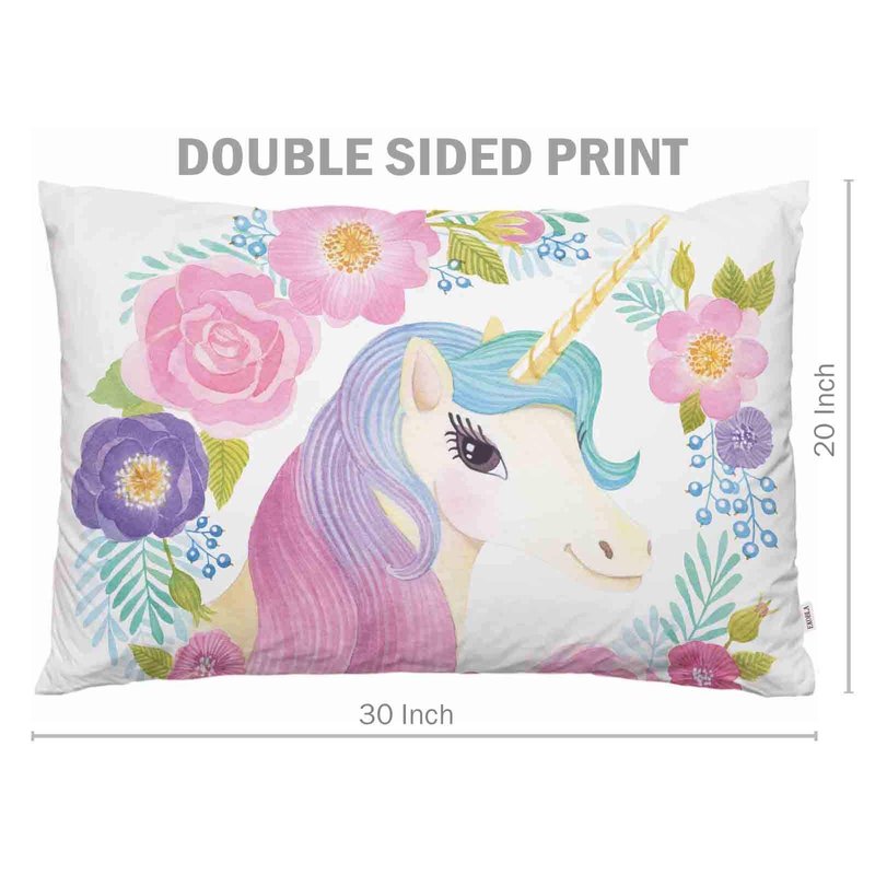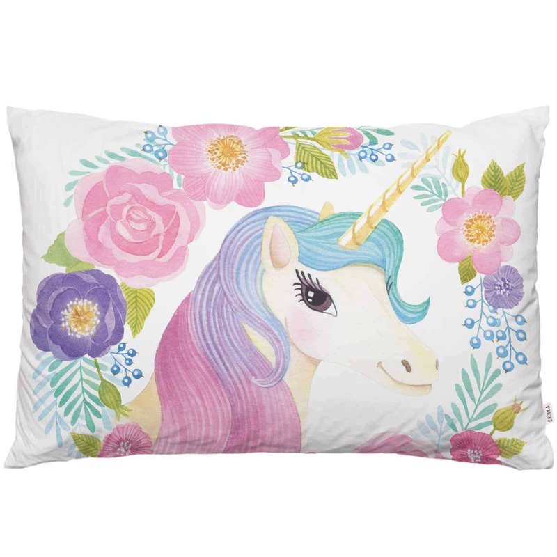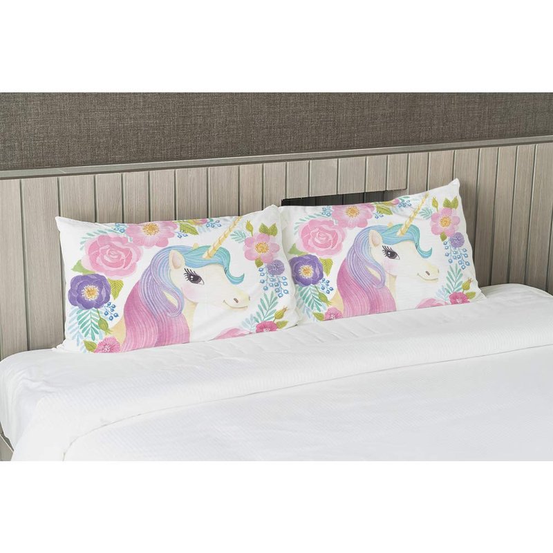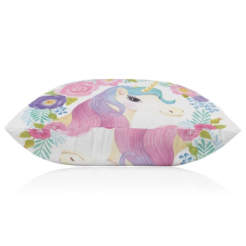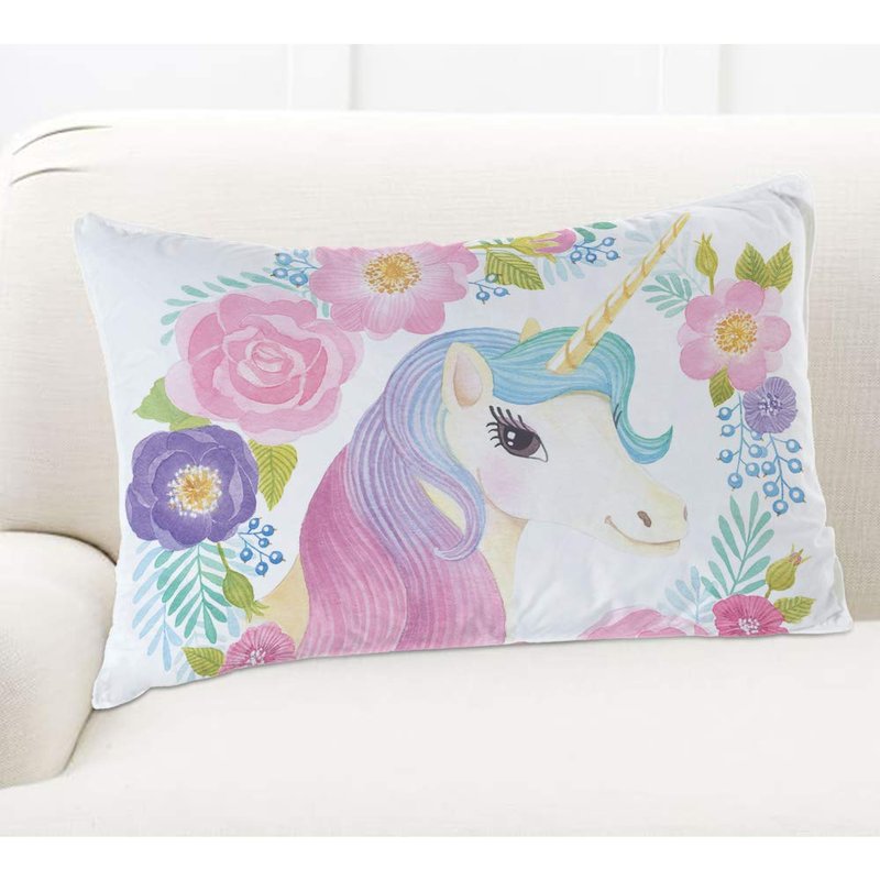 EKOBLA Throw Pillow Cover Animal Cute Unicorn Pink Purple Blue Wavy Hair in Garland Spring Flowers Leaf Decor Lumbar Pillow Case Cushion for Sofa Couch Bed Standard Queen Size 20x30 Inch