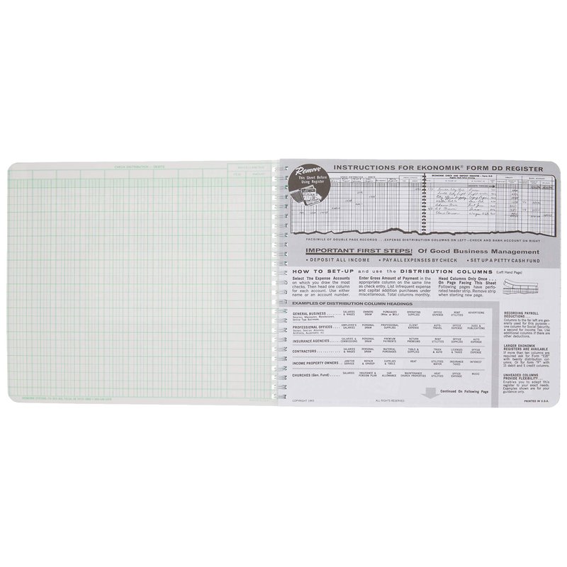 Ekonomik DD Wirebound Form Dd Check Register W/10 Left Distribution Columns, 8-3/4X10