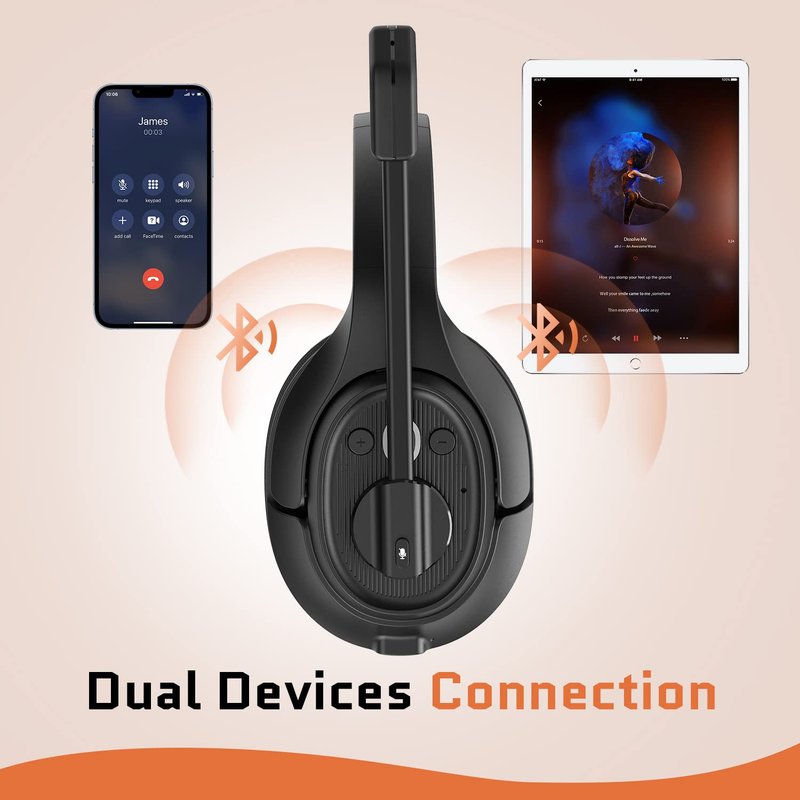- 【Extremely Comfortable Headset】This bluetooth headset with microphone is built for your comfort. It features an Over-Ear size soft earcups that is removable and very easy to clean. You can wear it all day, and use this bluetooth headset for truck drivers no matter the head size. You can also adjust the headband to help you reduce the pressure on your head. This EKSA H1 trucker headset can pair with 2 devices simultaneously, ideal for switching between listening to music and clear calls.
